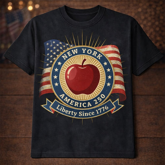 Men's American 250th New York Apple American Flag Patriotic Retro Printed T-shirt