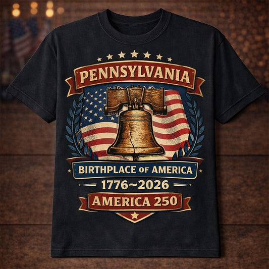 Men's American 250th Pennsylvania Liberty Bell Birthplace of America Patriotic Printed T-shirt