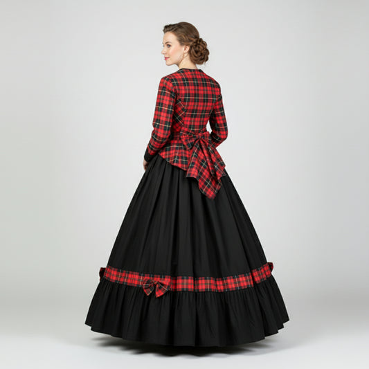 Red Plaid Victorian Christmas Carol Dress