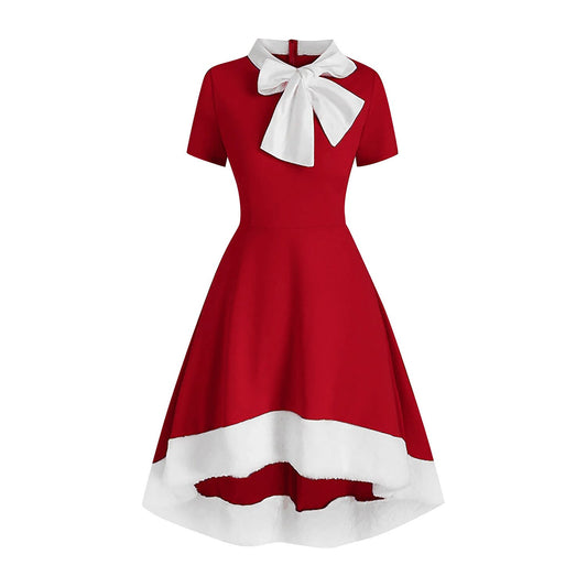 Bow Neck Asymmetrical Hem Xmas Dress