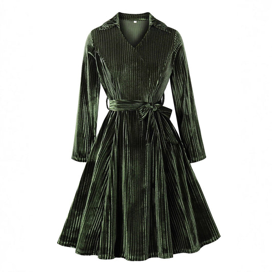 Vintage Xmas Belted A-Line Velvet Dress