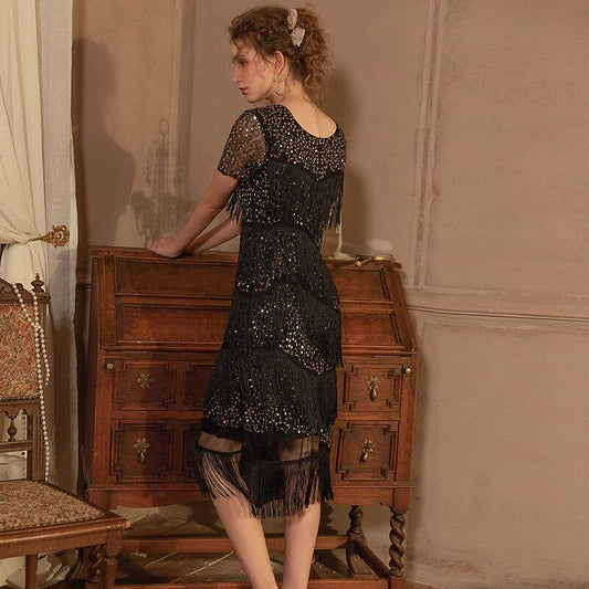 Sequin Tassel Trim Flapper Dress with Accessories Set