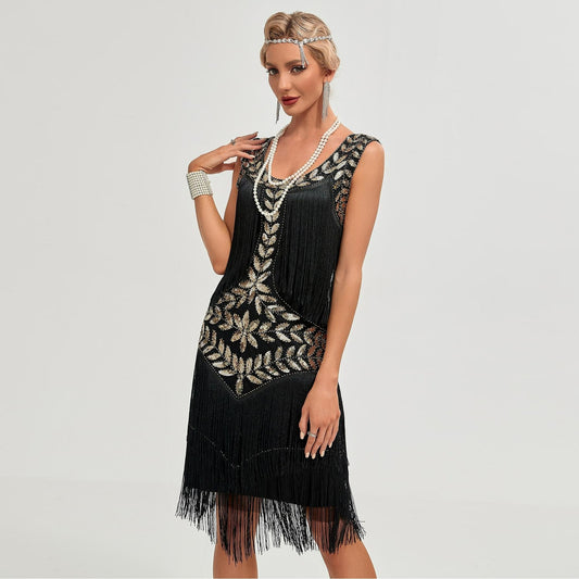 Leaf Sequin Tassels Flapper Dress