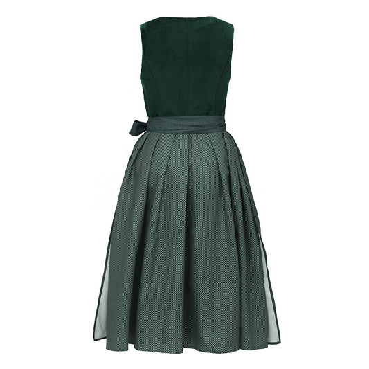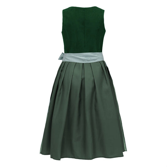 Women's Green Dirndl Dress Square Neck Zipper Front with Apron