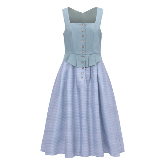 Women's Two Tone Dirndl Dress Button Down with Apron
