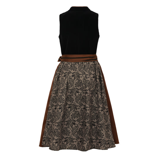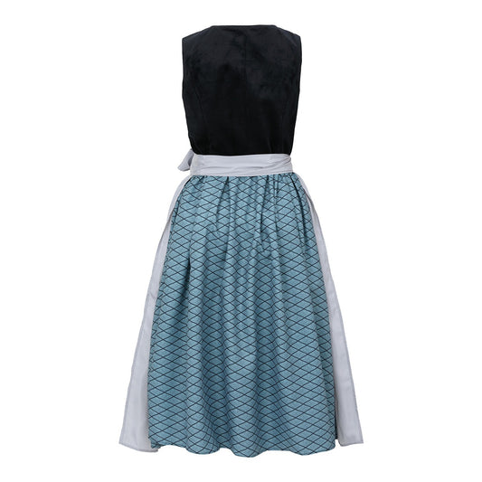 Women's Dirndl Dress Stand Collar Zipper Front with Trimmed Apron