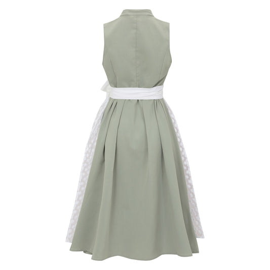 Women's Sage Green Dirndl Dress Stand Collar with Lace Apron