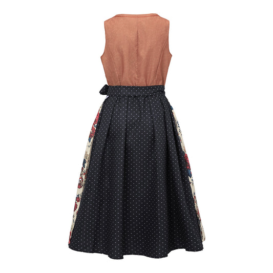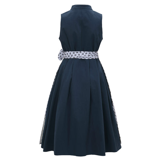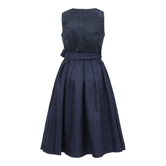 Women's Solid Navy Blue Patterned Dirndl Dress with Apron