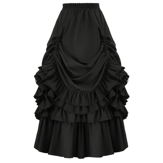 Gothic Adjustable Elastic Waist Ruffle Cake Maxi Skirt