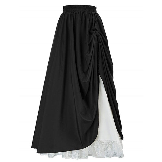 Retro Vintage Medieval Solid Maxi Skirt with Ruffle Trim