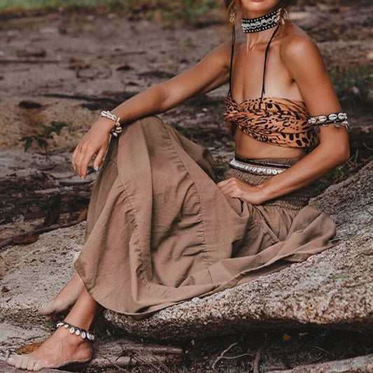 Retro Style Cotton Basic Wrap Skirt with Two Way Wear Design