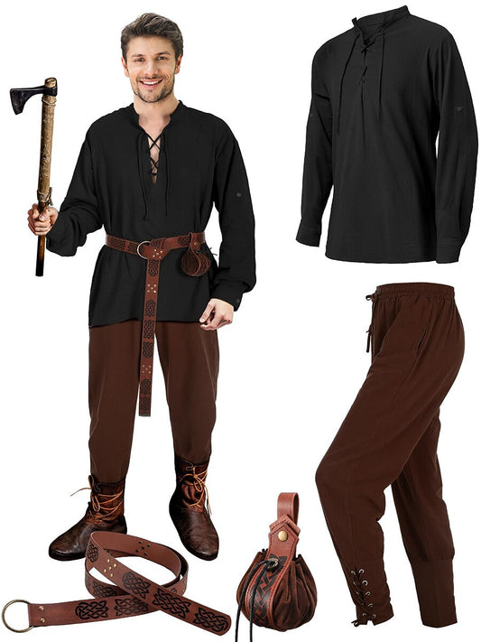 Pirate & Viking Style Outfit Set: Shirt, Pants, Waist Belt
