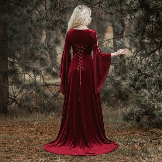 PromotionMedieval Velvet Split Sleeve Maxi Dress
