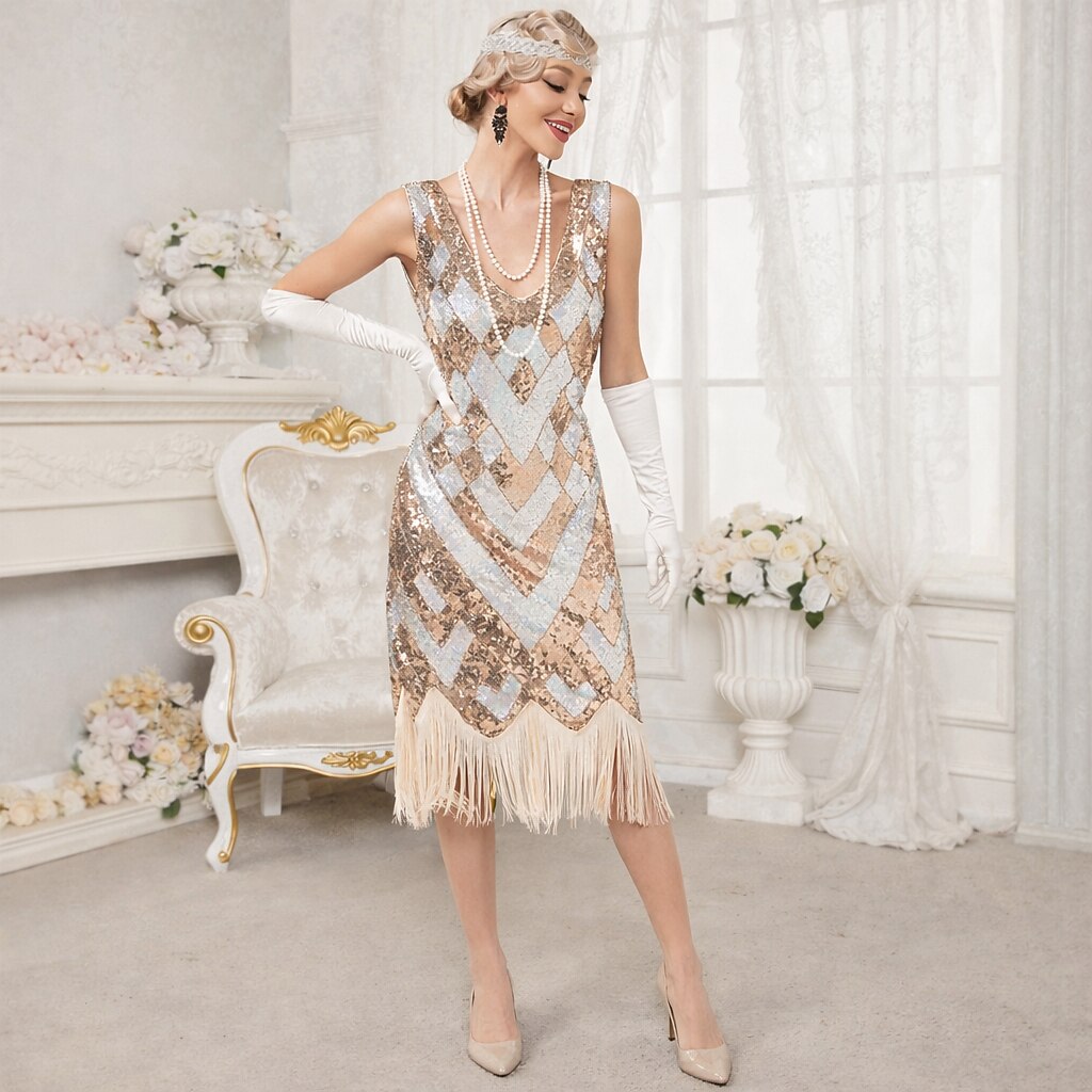 Sequin Chevron Flapper Dress with Vintage Glam