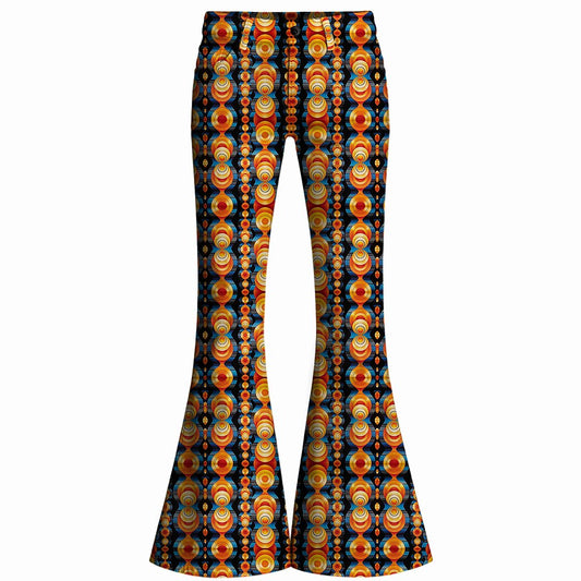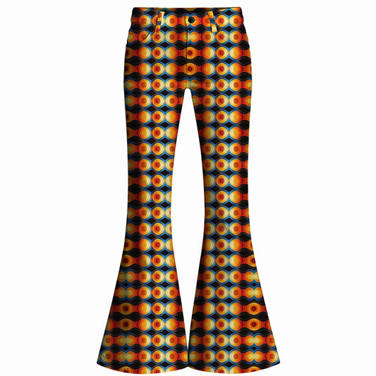 Retro 70s Psychedelic Circle Print High Waist Wide Flared Trousers
