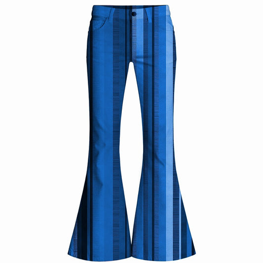Retro 70s Blue Stripes High Waist Wide Flared Trousers