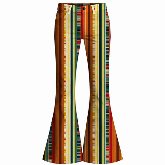 Retro 70s Colorful Stripes High Waist Wide Flared Trousers
