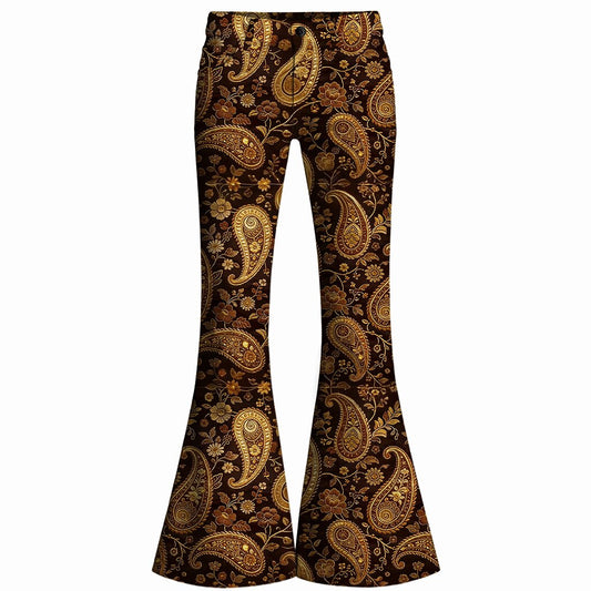 Retro 70s Paisley Print High Waist Wide Flared Trousers