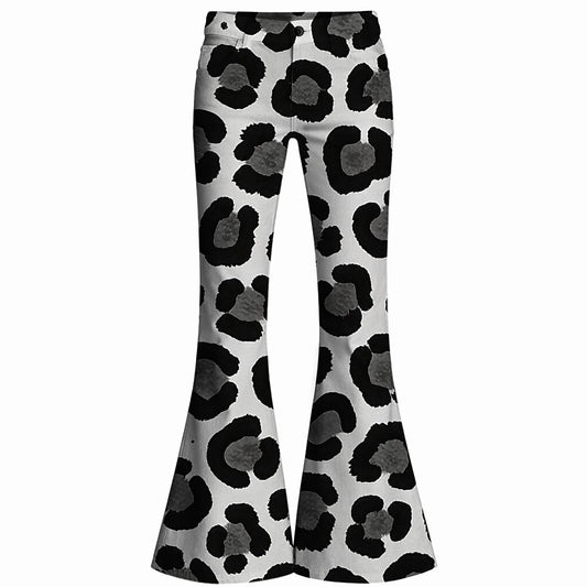 Retro 70s Leopard Print High Waist Wide Flared Trousers