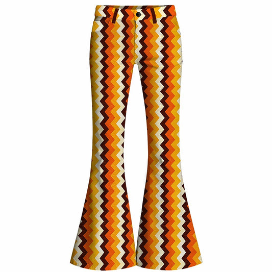 Retro 70s Zigzag Print High Waist Wide Flared Trousers