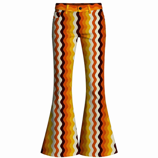 Retro 70s Wavy Orange-Red High Waist Wide Flared Trousers