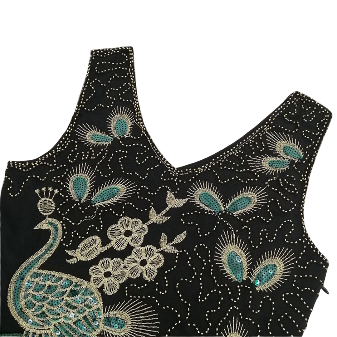 Step into the Jazz Age with our complete 1920s Great Gatsby flapper dress and accessory set for women. This stunning vintage cocktail dress shines with a sexy V-neck, intricate sequin patterns, and a dynamic tassel fringe hem. Perfect for Roaring 20s themed parties, proms, or a fancy dress costume, this all-in-one outfit ensures a show-stopping entrance. What's in the box: Earrings Headwear Gloves Dress