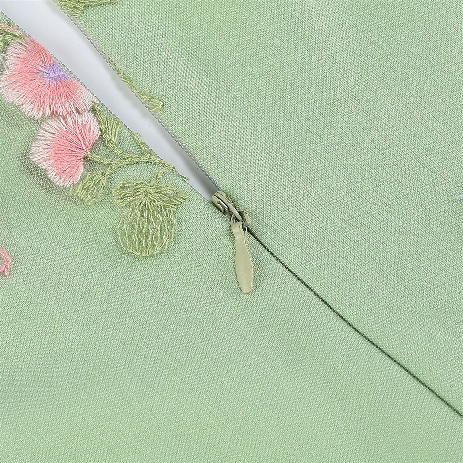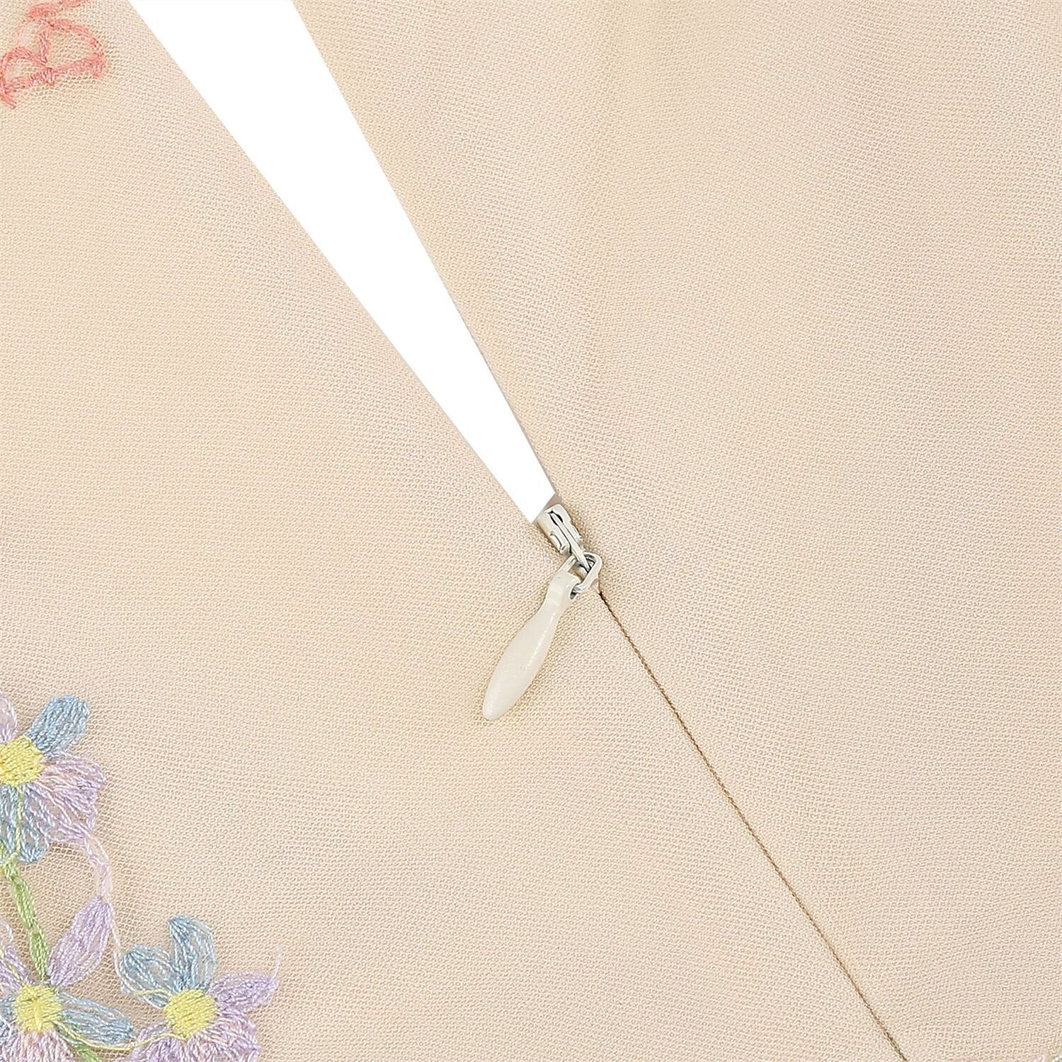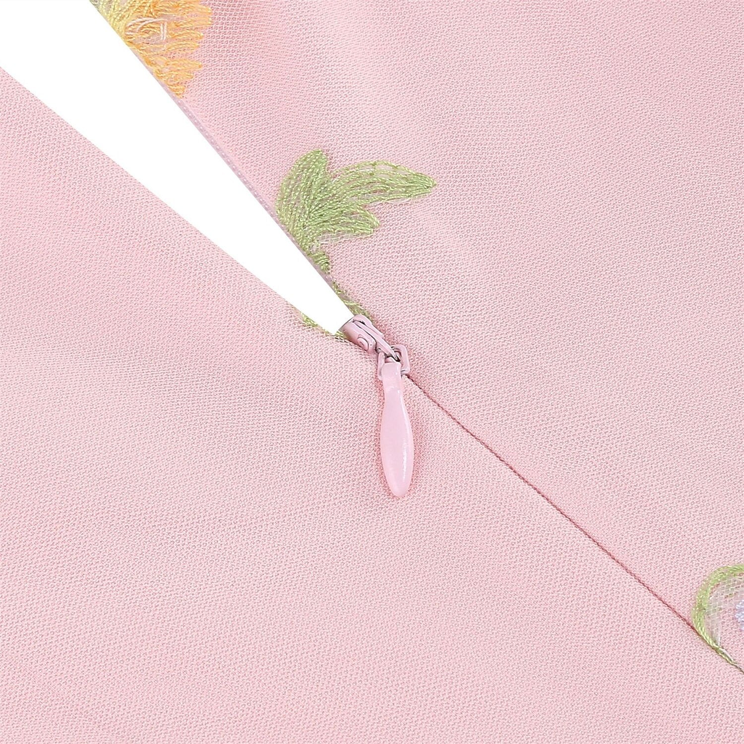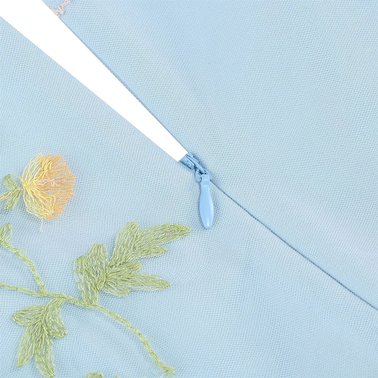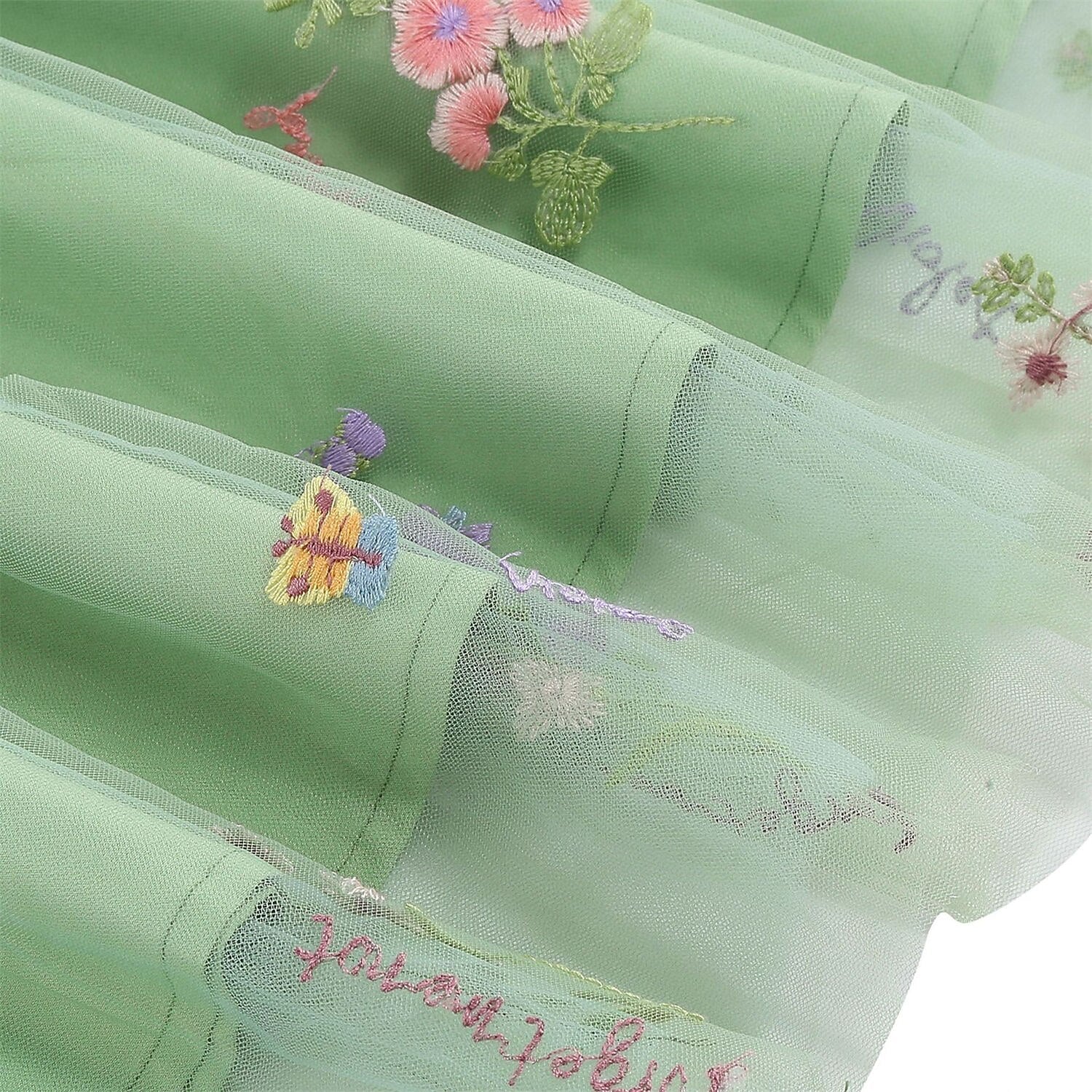 This women’s midi dress features an elegant 1950s-inspired style with a soft mesh overlay and delicate floral embroidery. Designed with a flattering V-neck, airy sleeves, and an A-line silhouette, it creates a graceful and feminine look. Perfect for tea parties, evening occasions, and spring or summer wear.