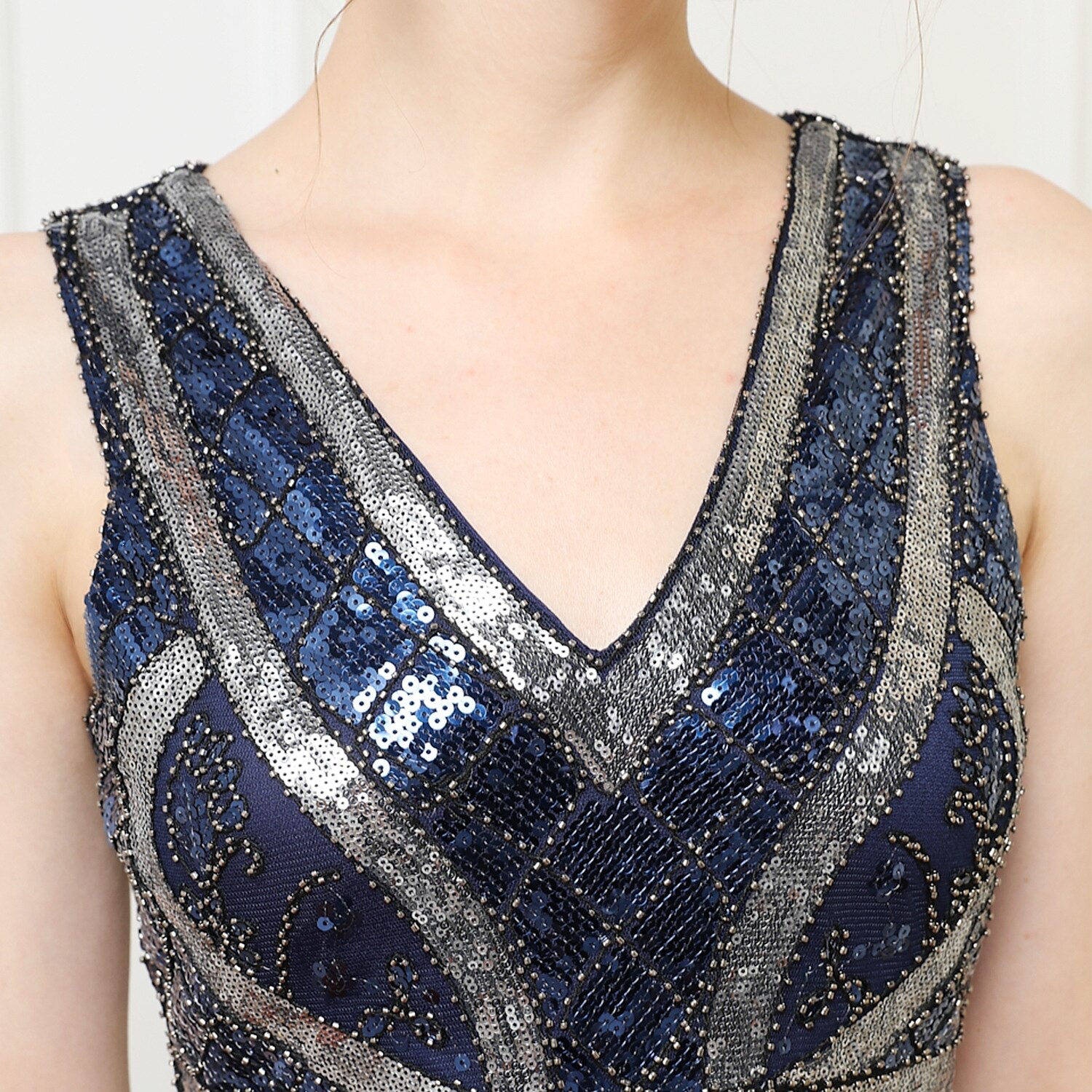 Navy Blue 1920s Sequin Fringe Flapper Dress