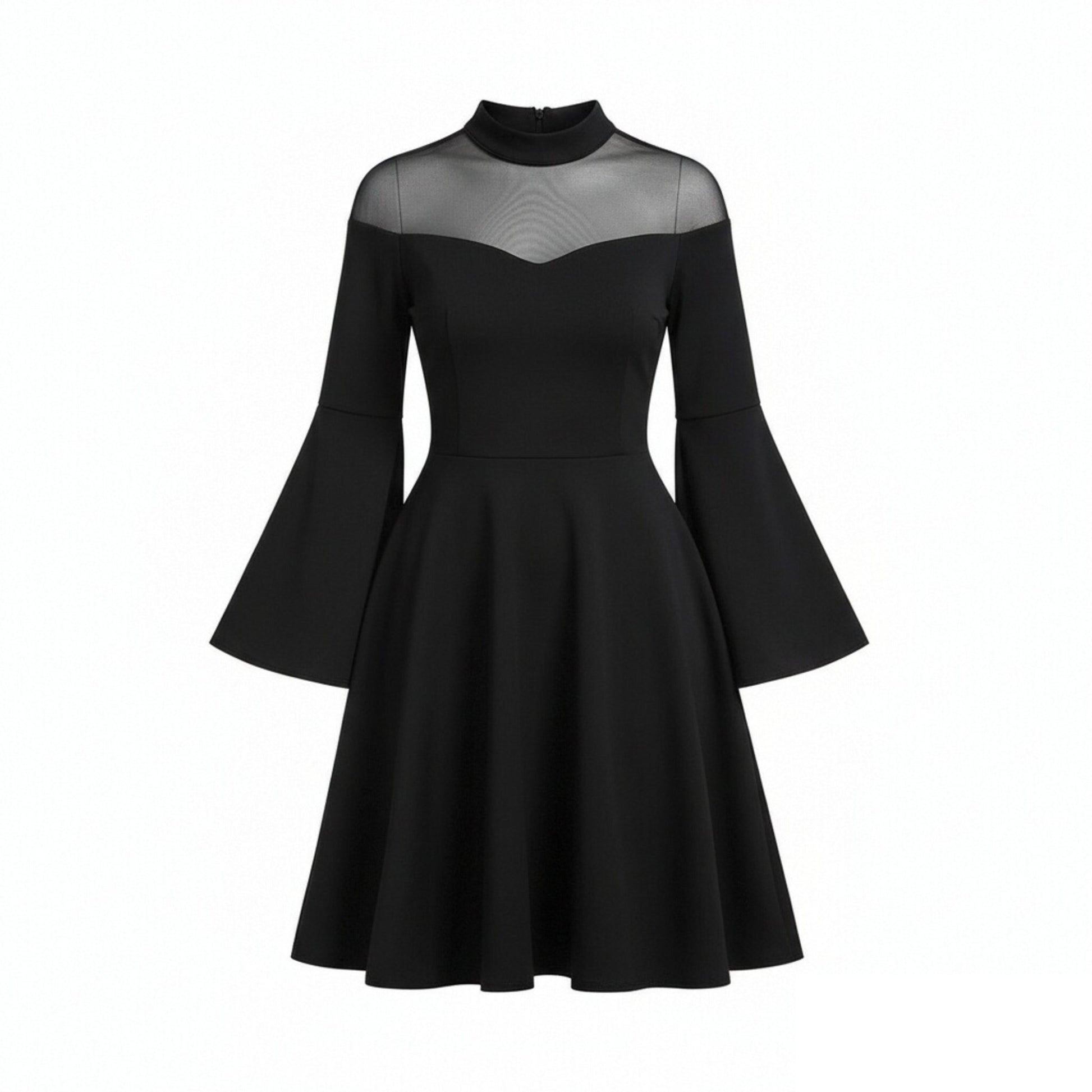 Women's 1950s High Neck Bell Sleeve A-Line Dress