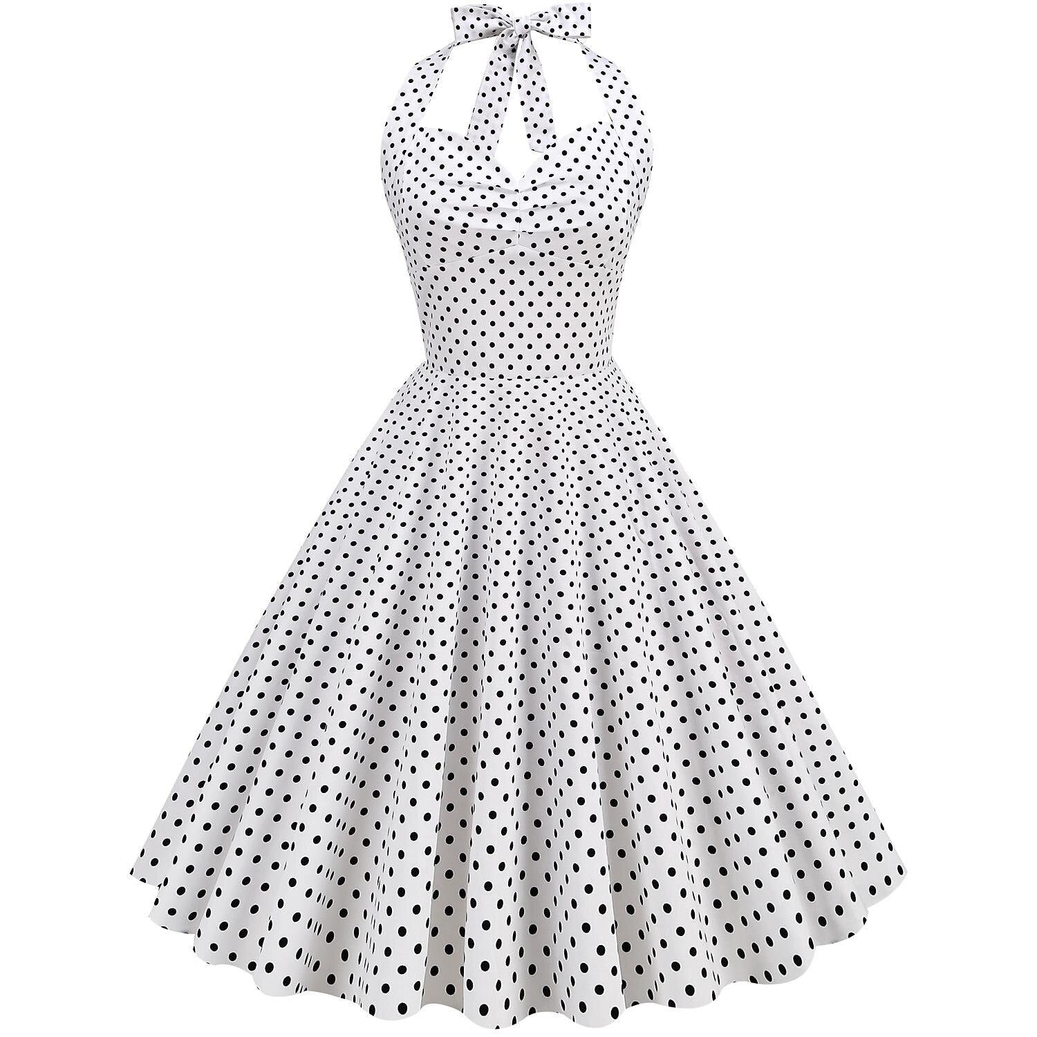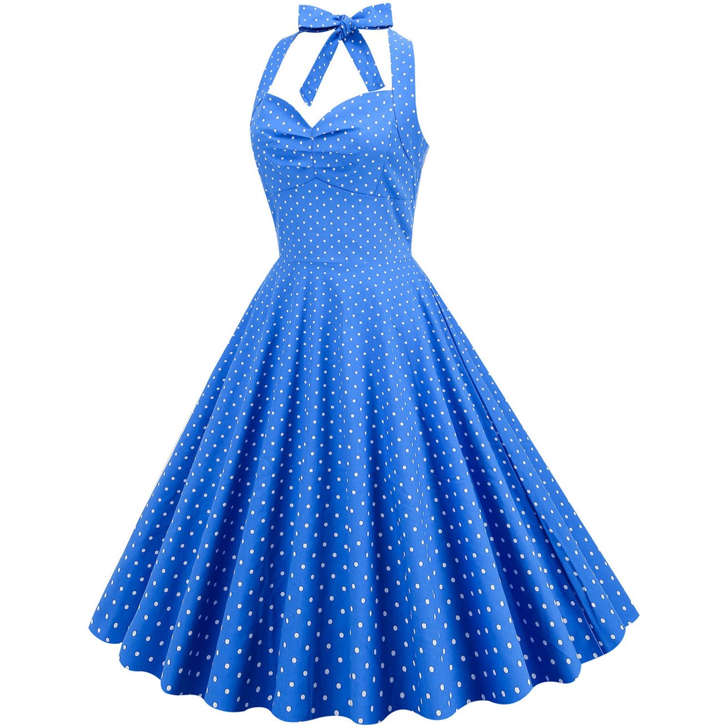 Women's 1950s Polka Dot Halter Neck Swing Dress
