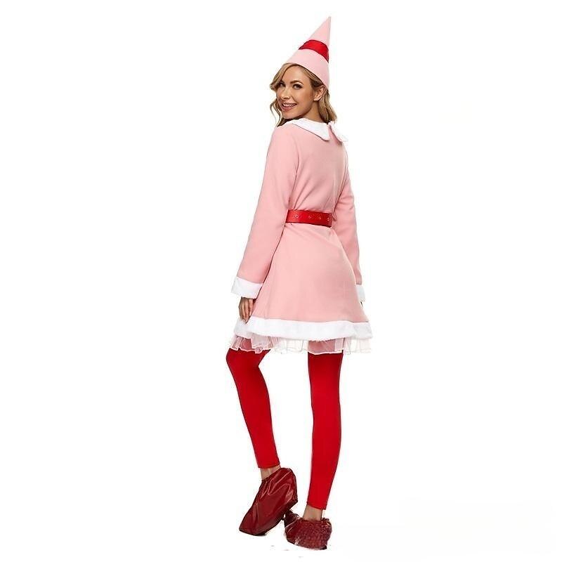 Become Santa's favorite helper in this festive Christmas elf costume for women. Perfect for holiday parties, New Year's celebrations, or carnivals, this complete cosplay outfit is ready for any festive event. Made from comfortable polyester, it includes everything you need for a head-to-toe holiday look. What's in the box: Hat, Belt, Pants, Top