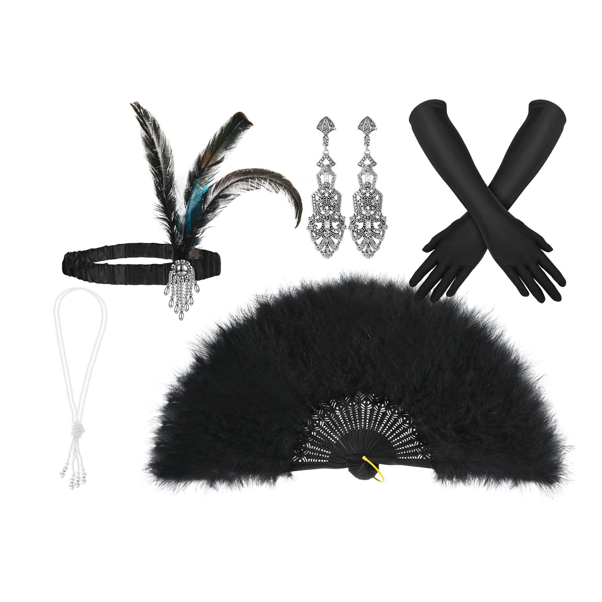 Roaring 20s Accessory Set with Feather Fan