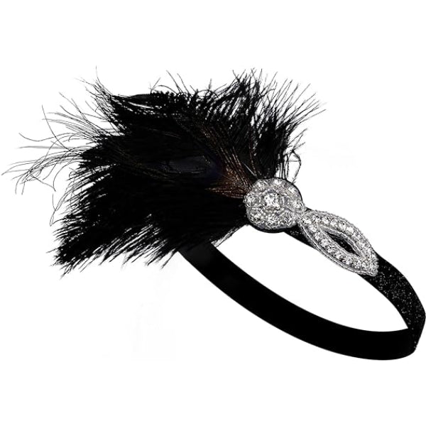 Channel the glamour of the 1920s with this adult Great Gatsby Feather Accessories Outfit, perfect for a Bachelorette Party, Wedding Reception, Halloween, Festival, or Prom. What's in the box: Headband, Gloves, Necklace, Earrings.
