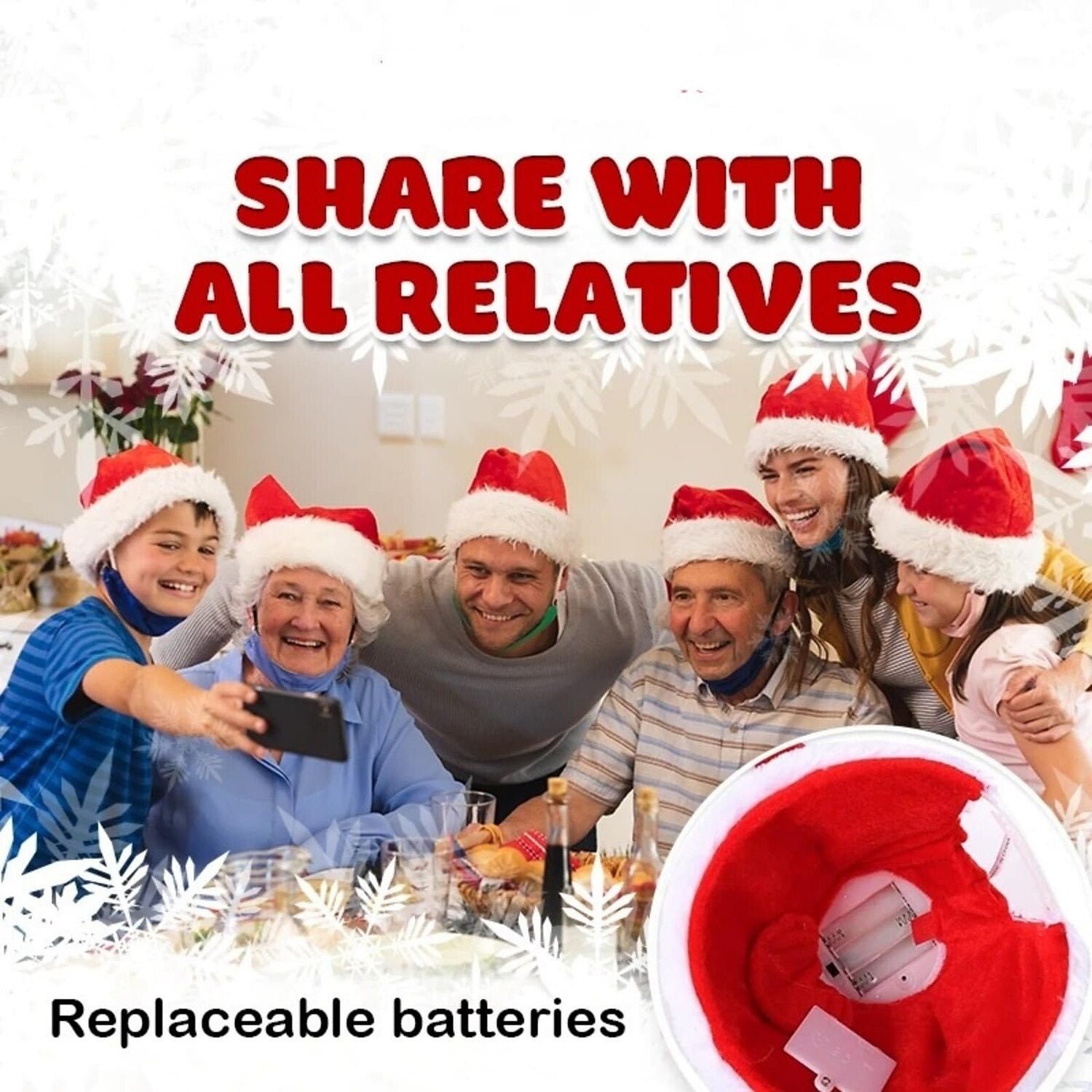 Get ready to party with this funny electric Santa hat, perfect for all ages! This animated Christmas hat sings and dances, bringing extra cheer to any holiday party, New Year's celebration, or masquerade. Made from comfortable polyester, it's a surefire way to spread joy and laughter throughout the festive season. What's in the box: 1*Hat Batteries are not included.
