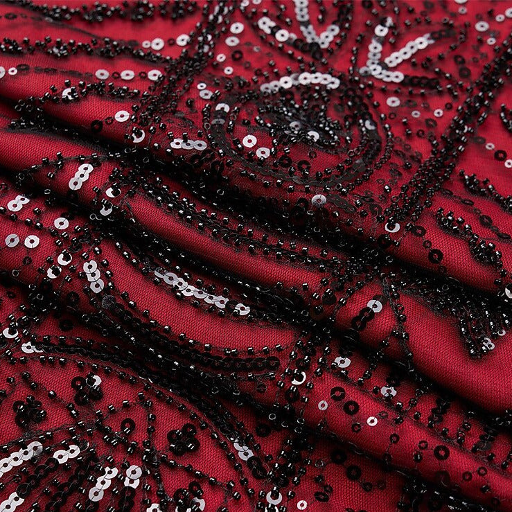 Channel your inner Flapper Girl with this Women's Retro Vintage Roaring 20s Flapper Dress and Accessories Set, perfect for a Great Gatsby themed event, Masquerade, Carnival, New Year, or Christmas party. This adult V-neck, knee-length cocktail dress, crafted from washable micro-elastic polyester, features dazzling sequin and fringe designs with short sleeves, suitable for all seasons. What's in the box: Dress, Headwear, Gloves, Necklace, Earrings.